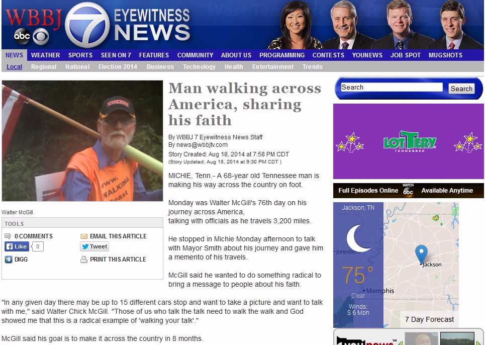 My Fox Carolinas -- North CarolinaABC News Channel 13 -- Asheville, NC Fox Carolina -- Greenville, SC Channel 7 and Channel 4 -- South Carolina CBS News 12 -- Chattanooga, TN WTVC ABC News 9 -- Chattanooga, TN ABC News 31 -- Huntsville, AL CBS News 19 -- Huntsville, AL NBC News 10 -- Knoxville, TN (View Video) ABC News 7 -- Jackson, TN (View Video)